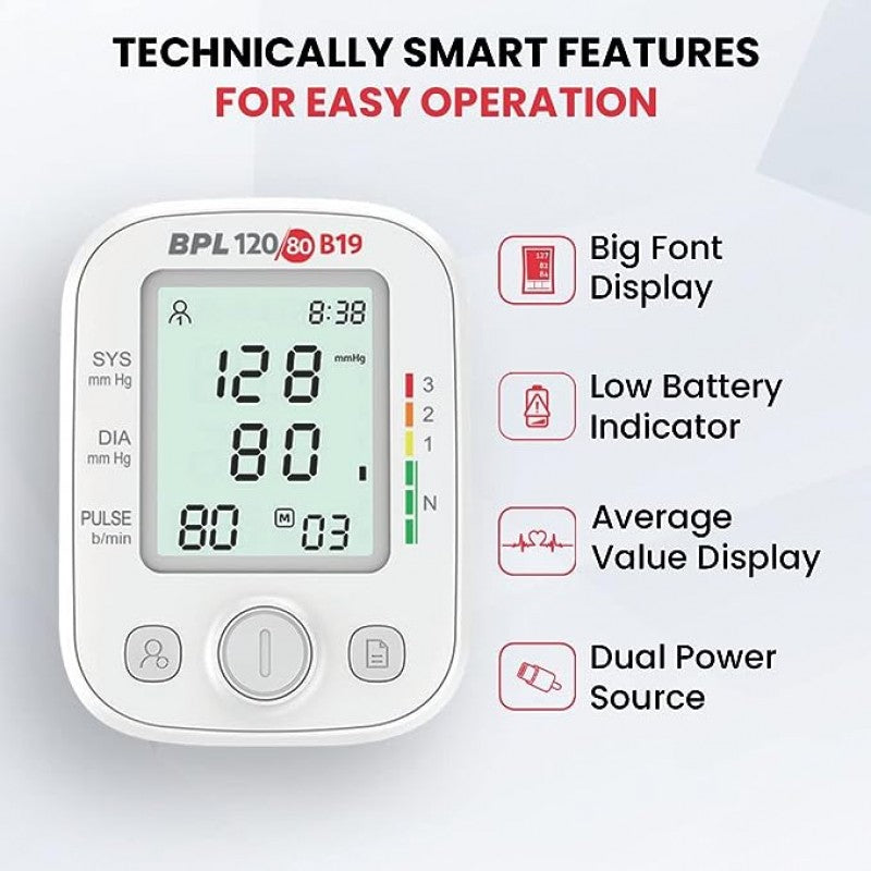 Elevate your health management with the advanced BPL 120/80 B19 fully automatic digital blood pressure monitor. Designed by BPL Medical Technologies, a trusted name in healthcare innovation, this device revolutionizes how you monitor your blood pressure. With a focus on convenience, accuracy, and user-friendly features, it empowers you to take control of your cardiovascular health like never before.