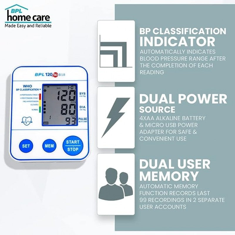 Are you looking for a reliable way to monitor your blood pressure from the comfort of your home? Look no further than the BPL 120/80 B18 Digital Blood Pressure Monitor by BPL Medical Technologies. This cutting-edge device is not just a blood pressure monitor; it's your partner in maintaining a healthy lifestyle.