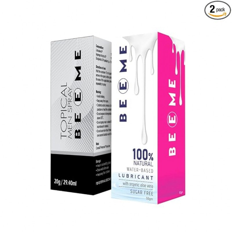 Combat dryness and enhance intimate moments with the Beeme Lube and Topical Spray Combo. Beeme Lube helps alleviate dryness, ensuring a comfortable experience. Formulated to be pH balanced, vegan, and edible, it won't disrupt natural pH levels and is stain-free. Use the Beeme Topical Spray for a non-transferable and safe solution. Simply spray, rub, wait, wipe, and wash for quick and effective results. Elevate your intimate experiences with this combo.