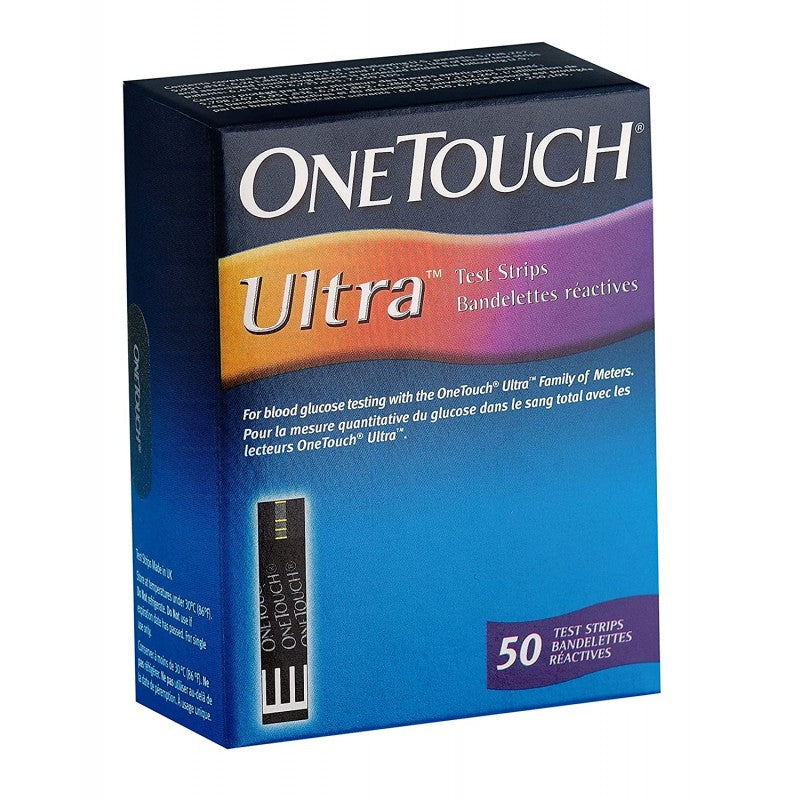- Select OneTouch Ultra brand of glucose meters along with these strips for testing